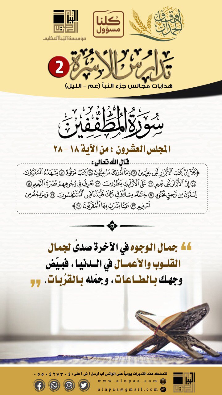 ▪️ كمَّلْ نفسك بالإيمان والعمل الصالح، وكمّل غيرك بالتواصي بالحق والتواصي بالصبر، لتسلم من الخسران وتفوز بال... المزيد