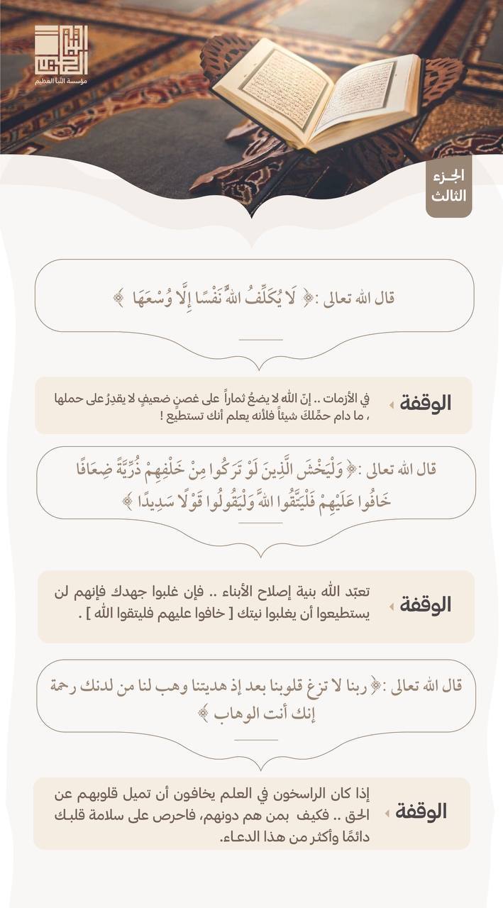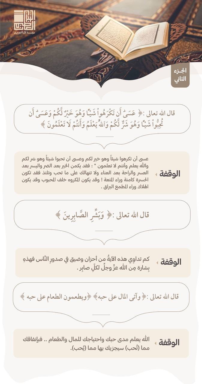 - إذا كان القرآن فيه كل هذا الخير، فالواجب على المرء أن ينكفئ عليه تلاوة وتدبرًا، وأن يتخذ لنفسه أورادًا من كتاب الله لا تنقطع.