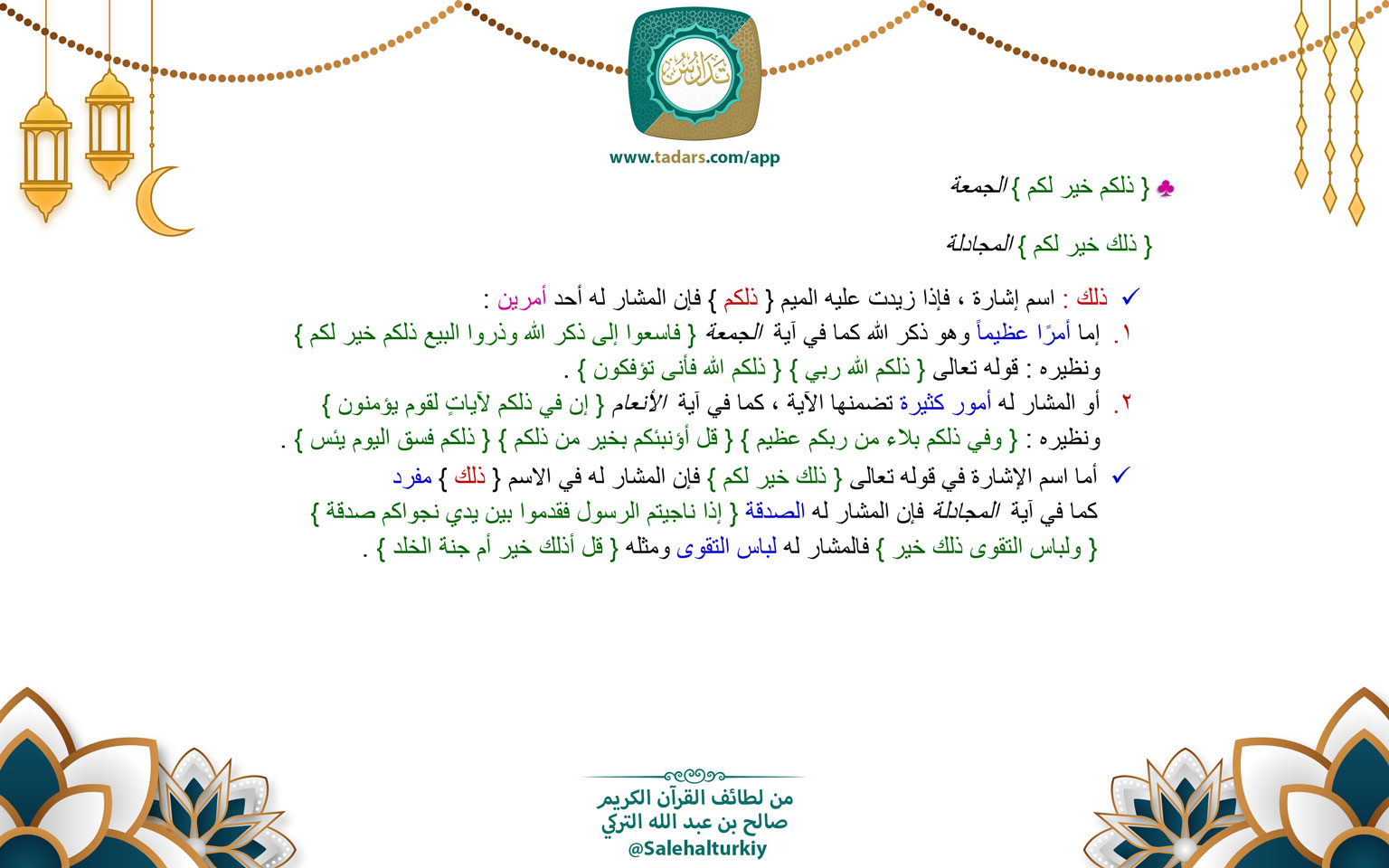 • ذلك : اسم إشارة ، فإذا زيدت عليه الميم { ذلكم } فإن المشار له أحد أمرين :