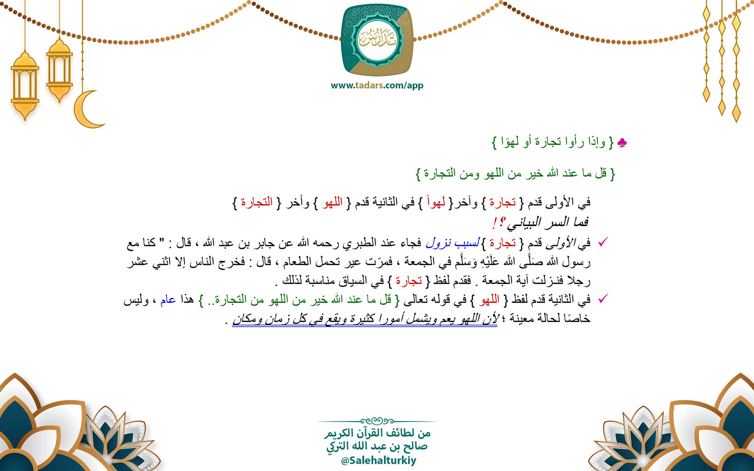{ قل ما عند الله خير من اللهو ومن التجارة }