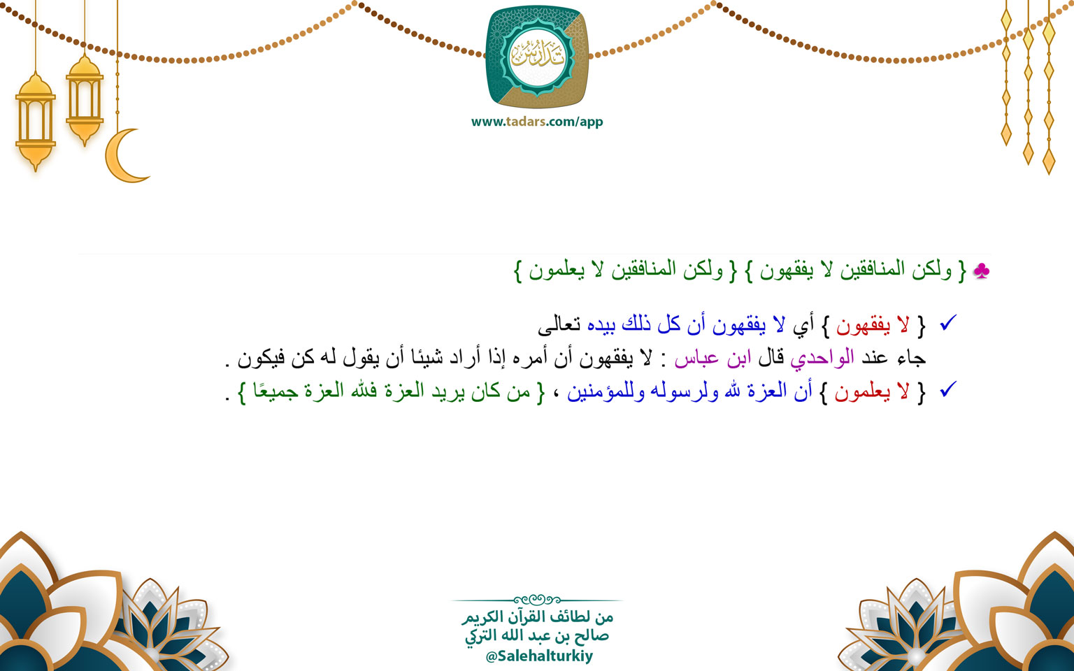 ● { ولكن المنافقين لا يفقهون } { ولكن المنافقين لا يعلمون }