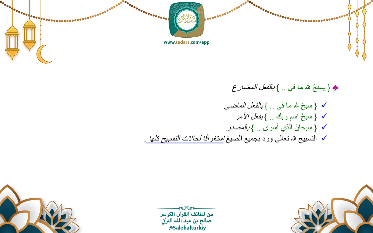 ● { يسبحُ لله ما في .. } بالفعل المضارع