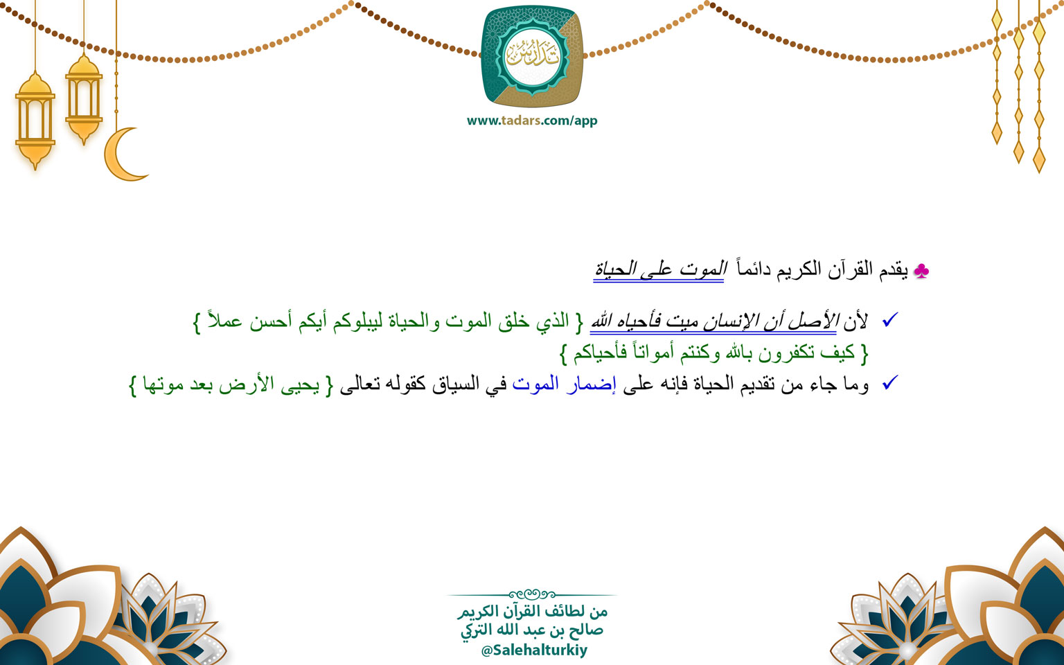 ● يقدم القرآن الكريم دائماً الموت على الحياة