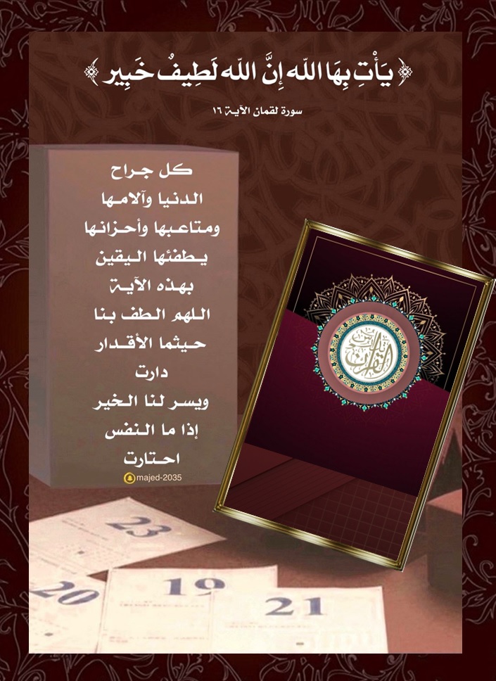 • اللهم الطف بنا حيثما الأقدار دارت، ويسر لنا الخير إذا ما النفس احتارت.