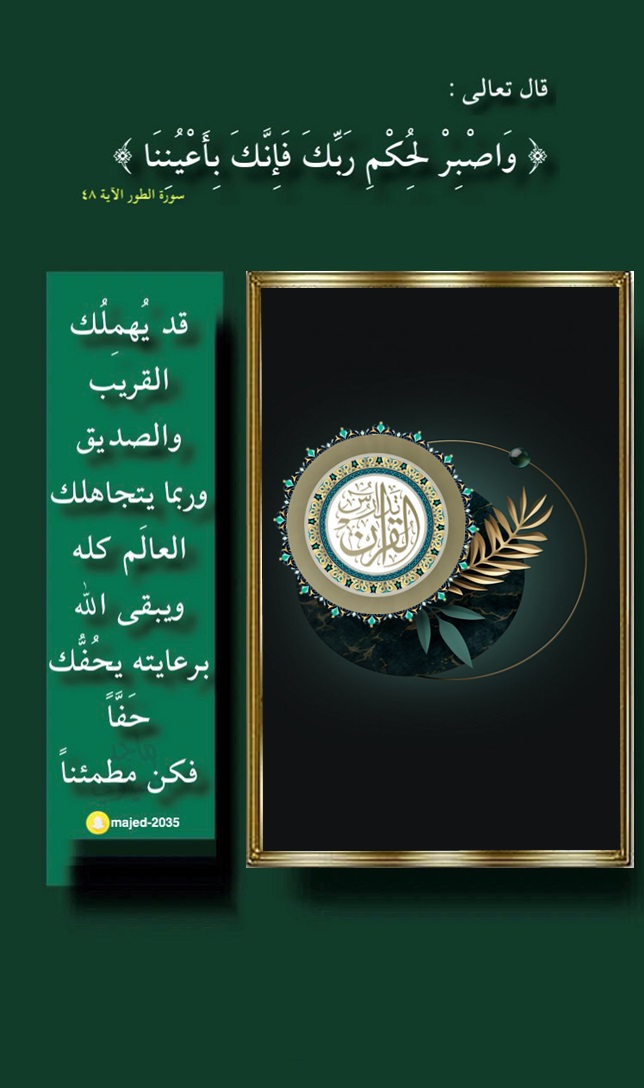 قد يُهمِلُك القريب والصديق وربما يتجاهلك العالَمُ كله .. ويبقى اللهُ برعايتهِ يحُفُّكَ حَفَّاً.. فكُن مطمئناً.