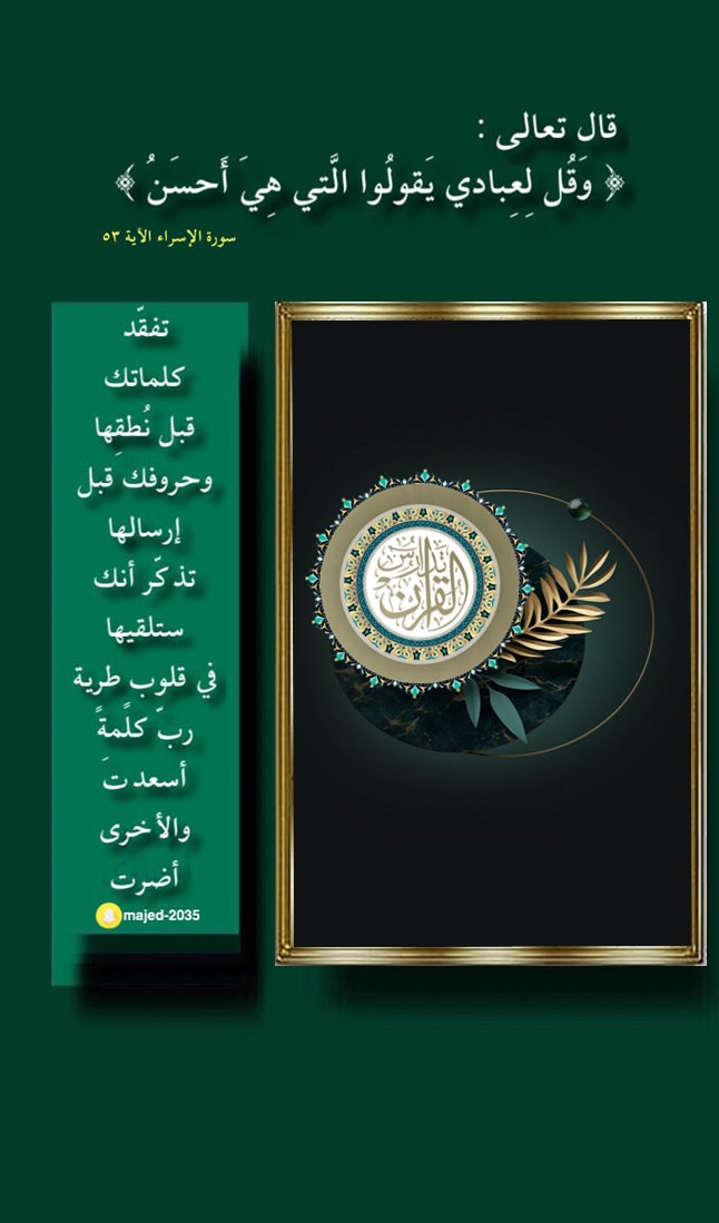 تفقّد كلماتك قبل نُطقِها وحروفك قبل إرسالها؛ تذكّر أنك ستُلقيها في قلوبٍ طرية .. رُبَّ كلمةً أسعدت، والأخرى أضرت.