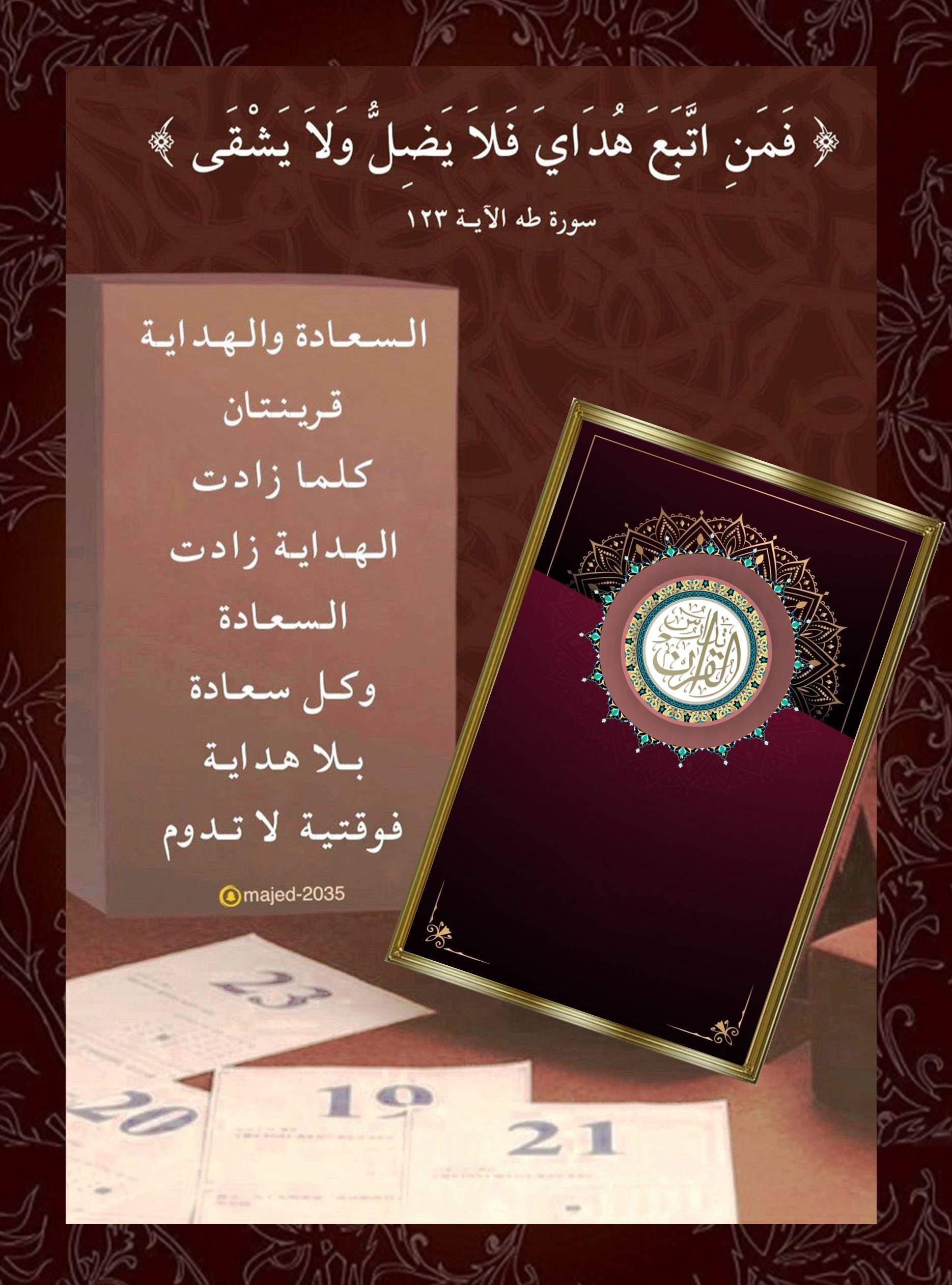 ﴿فَمَنِ اتَّبَعَ هُدَايَ فَلَا يَضِلُّ وَلَا يَشْقَى﴾