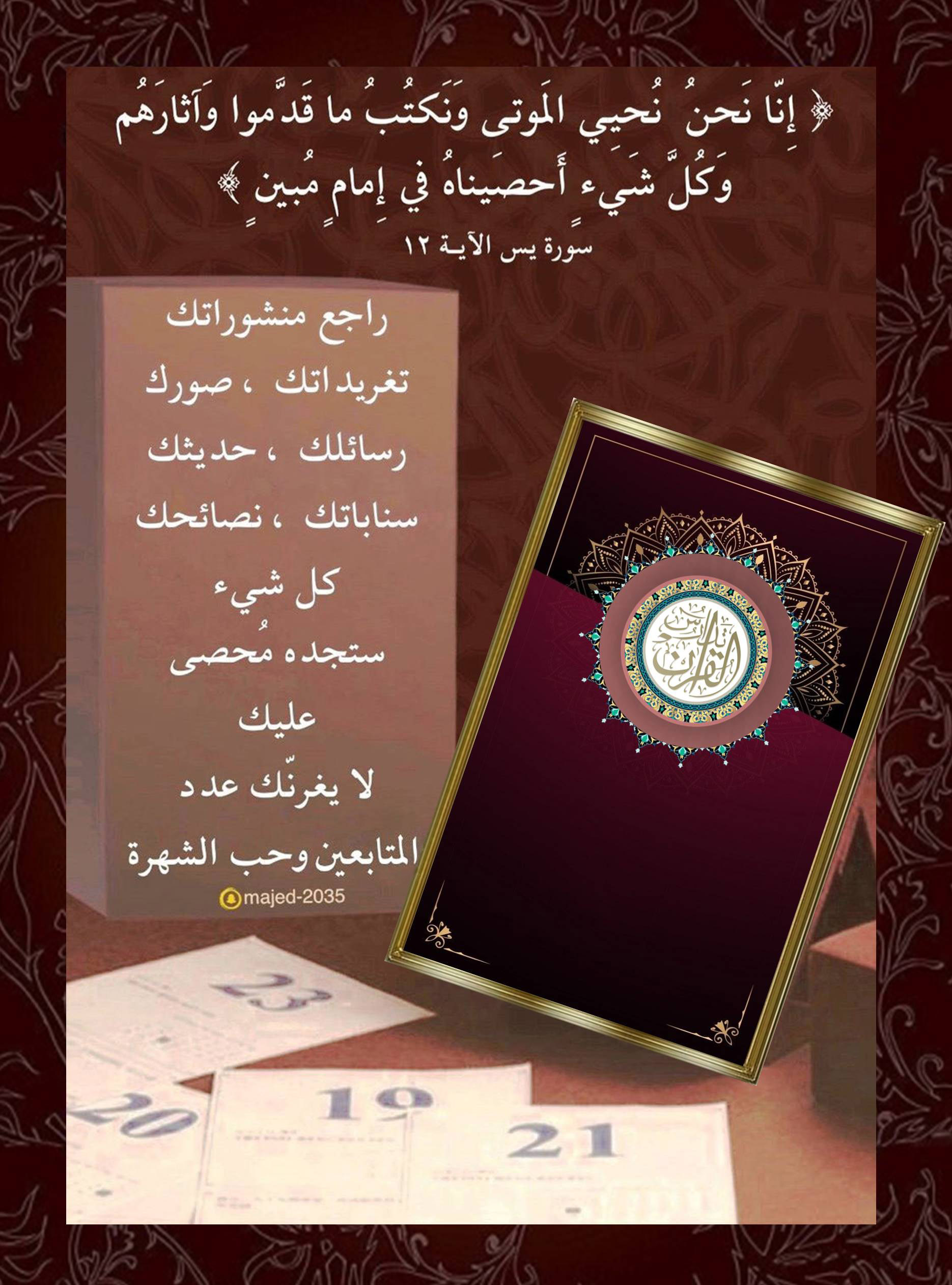 ﴿إِنَّا نَحْنُ نُحْيِي الْمَوْتَى وَنَكْتُبُ مَا قَدَّمُوا وَآثَارَهُمْ وَكُلَّ شَيْءٍ أَحْصَيْنَاهُ فِي إِمَامٍ مُّبِينٍ﴾