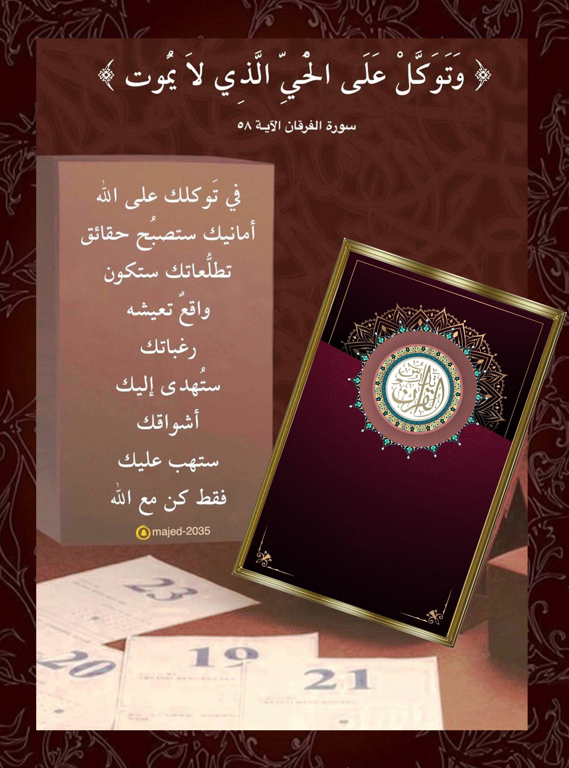﴿وَتَوَكَّلْ عَلَى الْحَيِّ الَّذِي لَا يَمُوتُ﴾