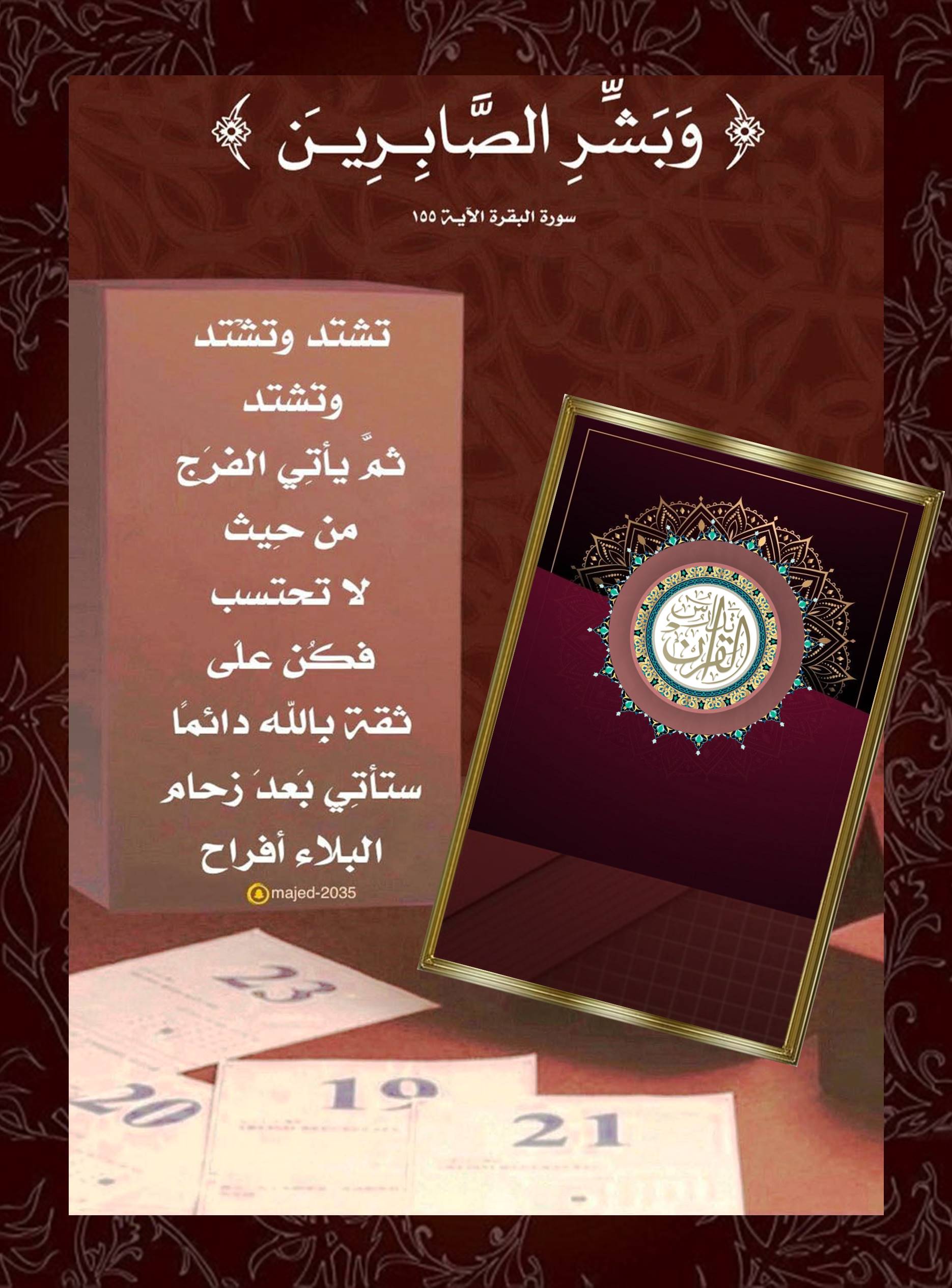 تشتَد وتشْتد وتَشتد، ثُمَّ يأتِي الفرَج من حِيث لا تحتسب فكُن علَى ثقَه بِالله دائمًا، ستأتِي بَعدَ زحام البلاء أفراح.