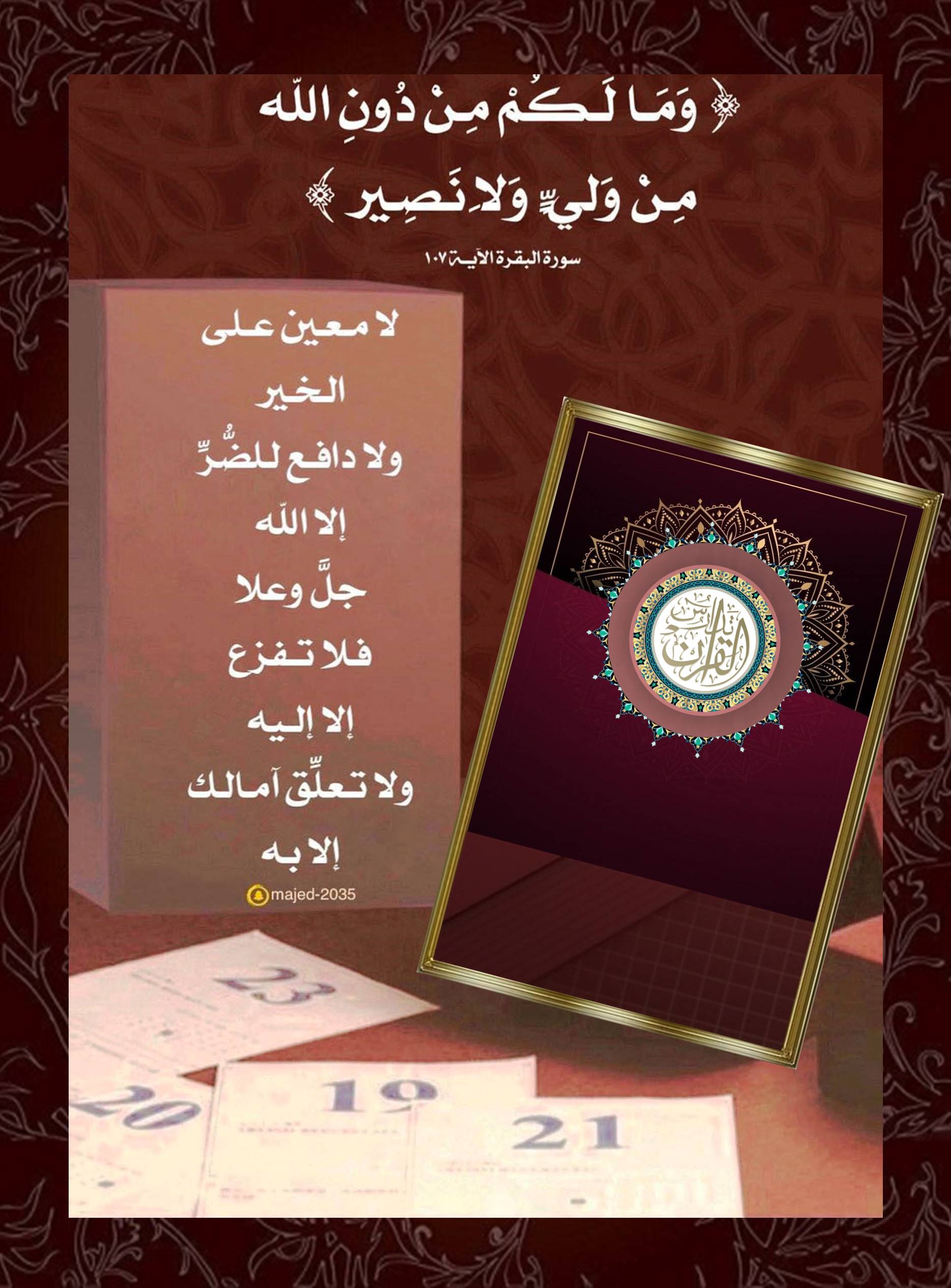 لا معين على الخير ولا دافع للضُّرِّ إلا الله جلَّ وعلا فلا تفزع إلا إليه ولا تعلِّق آمالك إلا به.