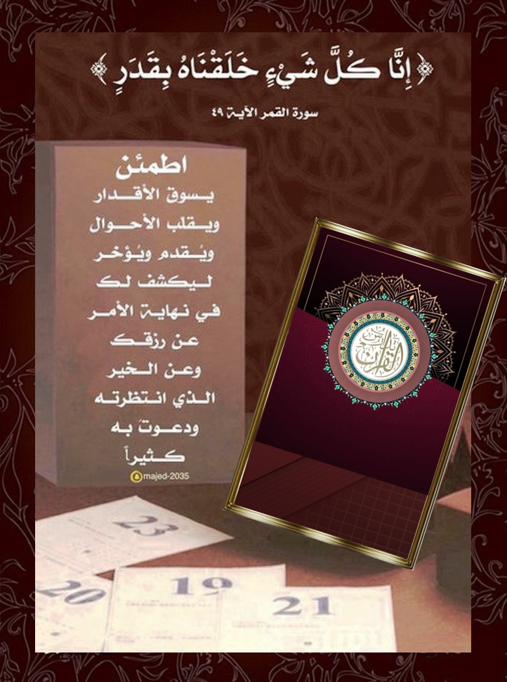 اطمـئن: يسوقُ الأقدار ويقلّب الأحوال ويقدّم ويُؤخر ليكشفَ لك في نهاية الأمر عن رزقك وعن الخير الذي انتظرته ودعوت به كثيراً.