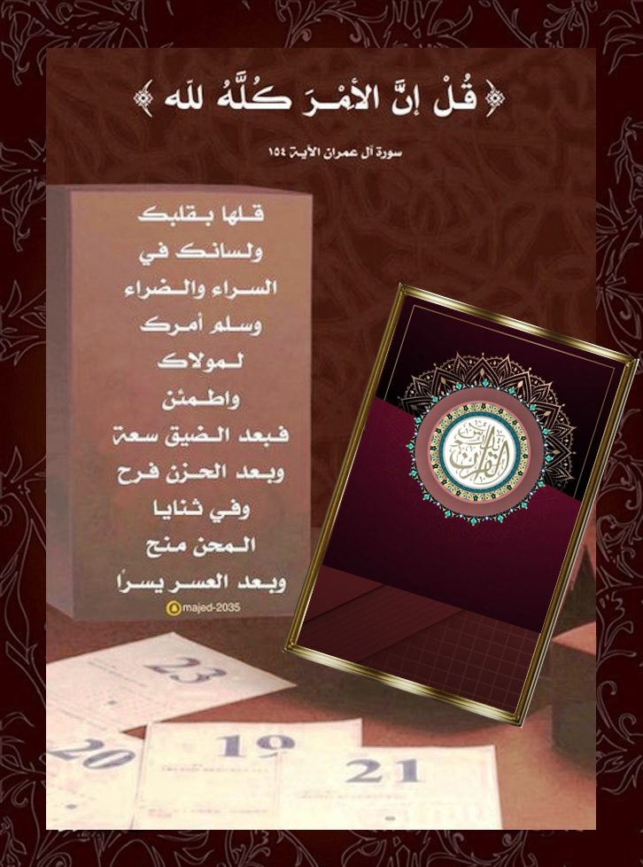 قلها بقلبك ولسانك في السراء والضراء، وسلم أمرك لمولاك، واطمئن؛ فبعد الضيق سعة وبعد الحزن فرح وفي ثنايا المحن منح وبعد العسر يسرًا.