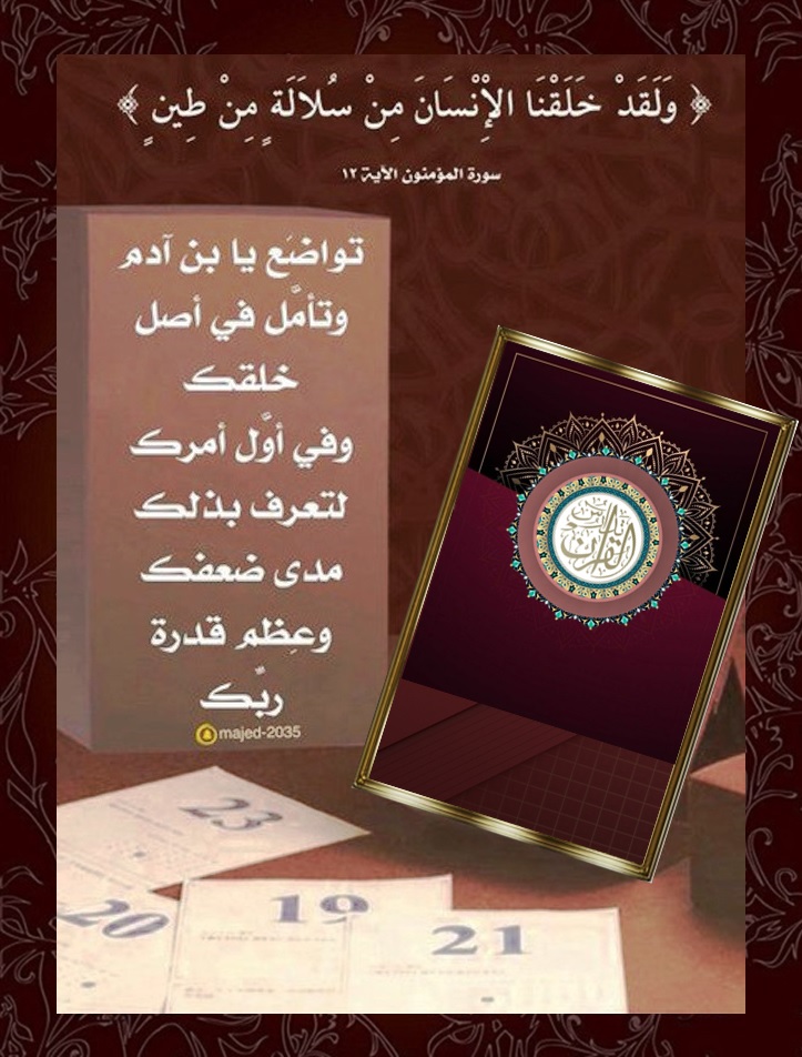 تواضَع يا بن آدم وتأمَّل في أصل خلقك وفي أوَّل أمرك لتعرف بذلك مدى ضعفك، وعِظم قدرة ربِّك.