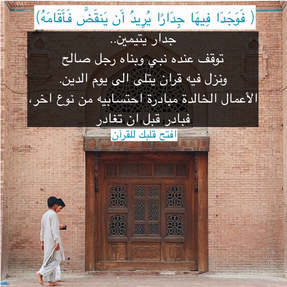 جدار يتيمين .. توقف عنده نبي وبناه رجل صالح ونزل فيه قرآن يتلى إلى يوم الدين. الأعمال الخالدة مبادرة احتسابيه من نوع آخر، فبادر قبل أن تغادر.
