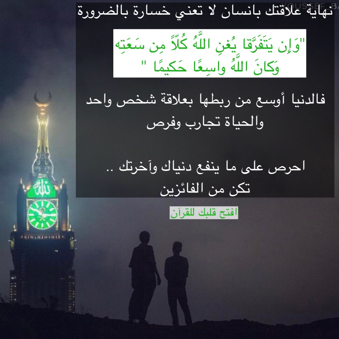 نهاية علاقتك بإنسان لا تعني خسارة بالضرورة، فالدنيا أوسع من ربطها بعلاقة شخص واحد والحياة تجارب وفرص، احرص على ما ينفع دنياك وآخرتك .. تكن من الفائزين.
