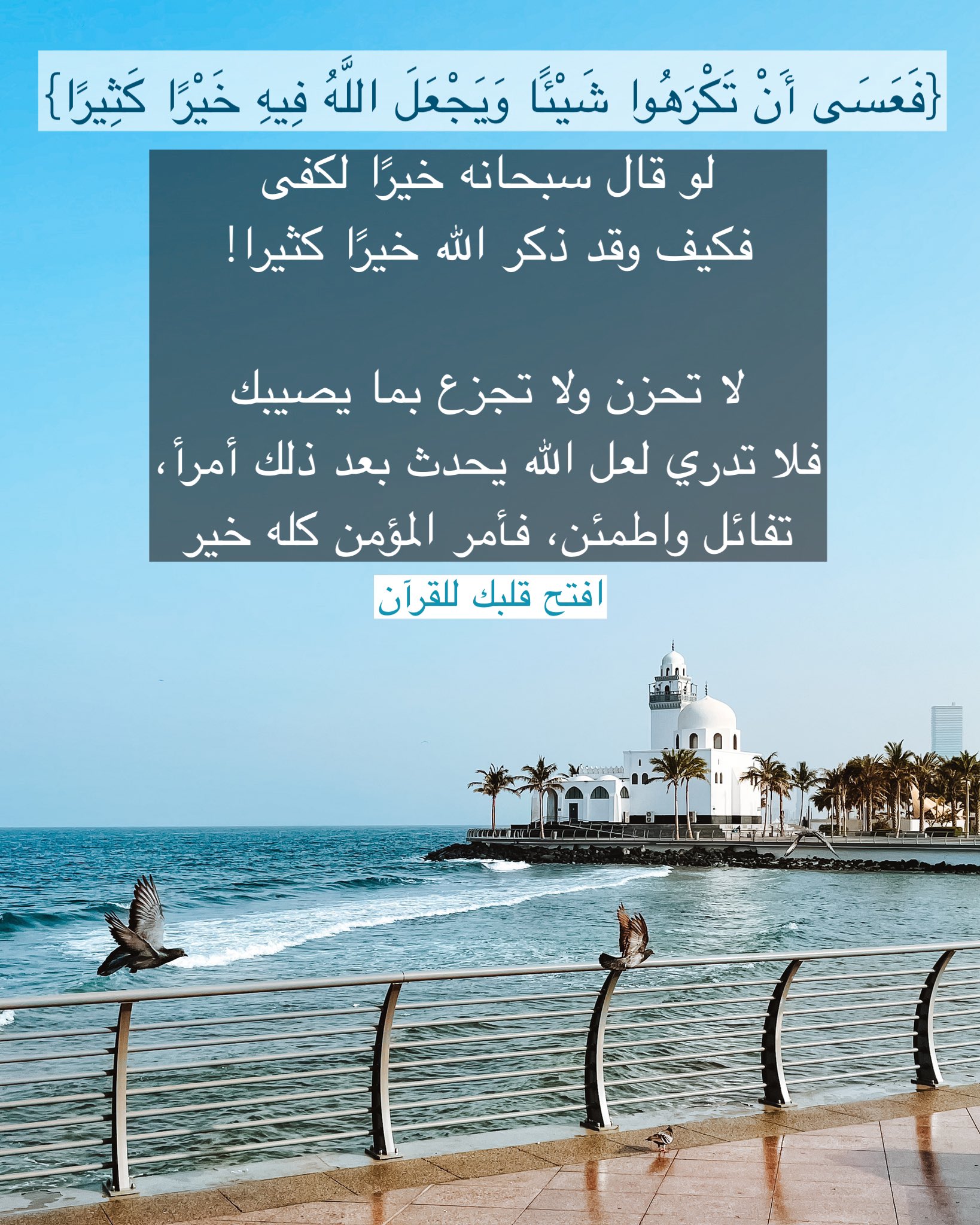 لو قال سبحانه خيرا لكفى فكيف وقد ذكر الله خيرا كثيرا! لا تحزن ولا تجزع بما يصيبك فلا تدري لعل الله يحدث بعد ذلك أمراً، تفائل واطمئن، فأمر المؤمن كله خير.
