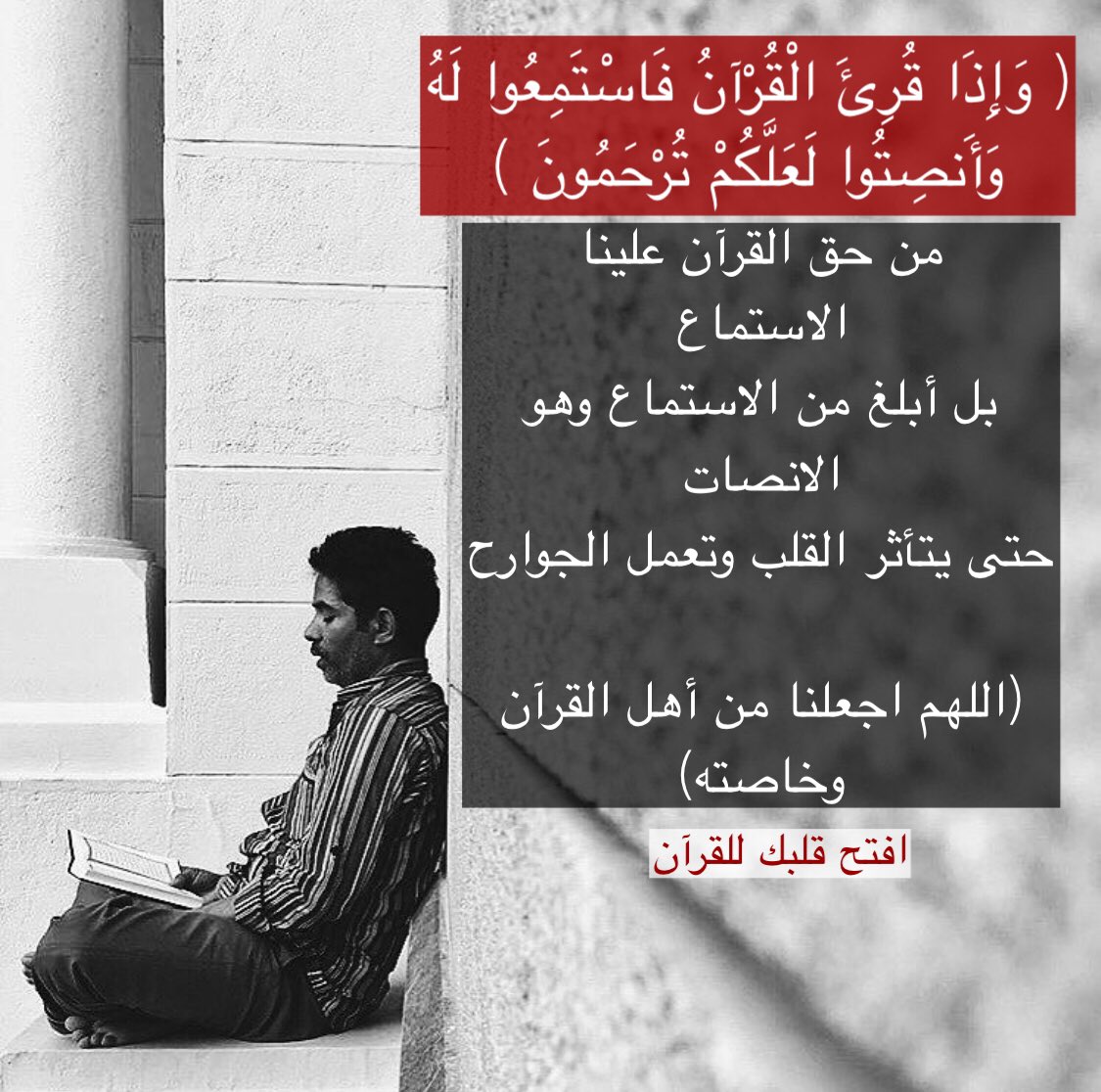 ﴿وَإِذَا قُرِئَ الْقُرْآنُ فَاسْتَمِعُوا لَهُ وَأَنصِتُوا لَعَلَّكُمْ تُرْحَمُونَ﴾: