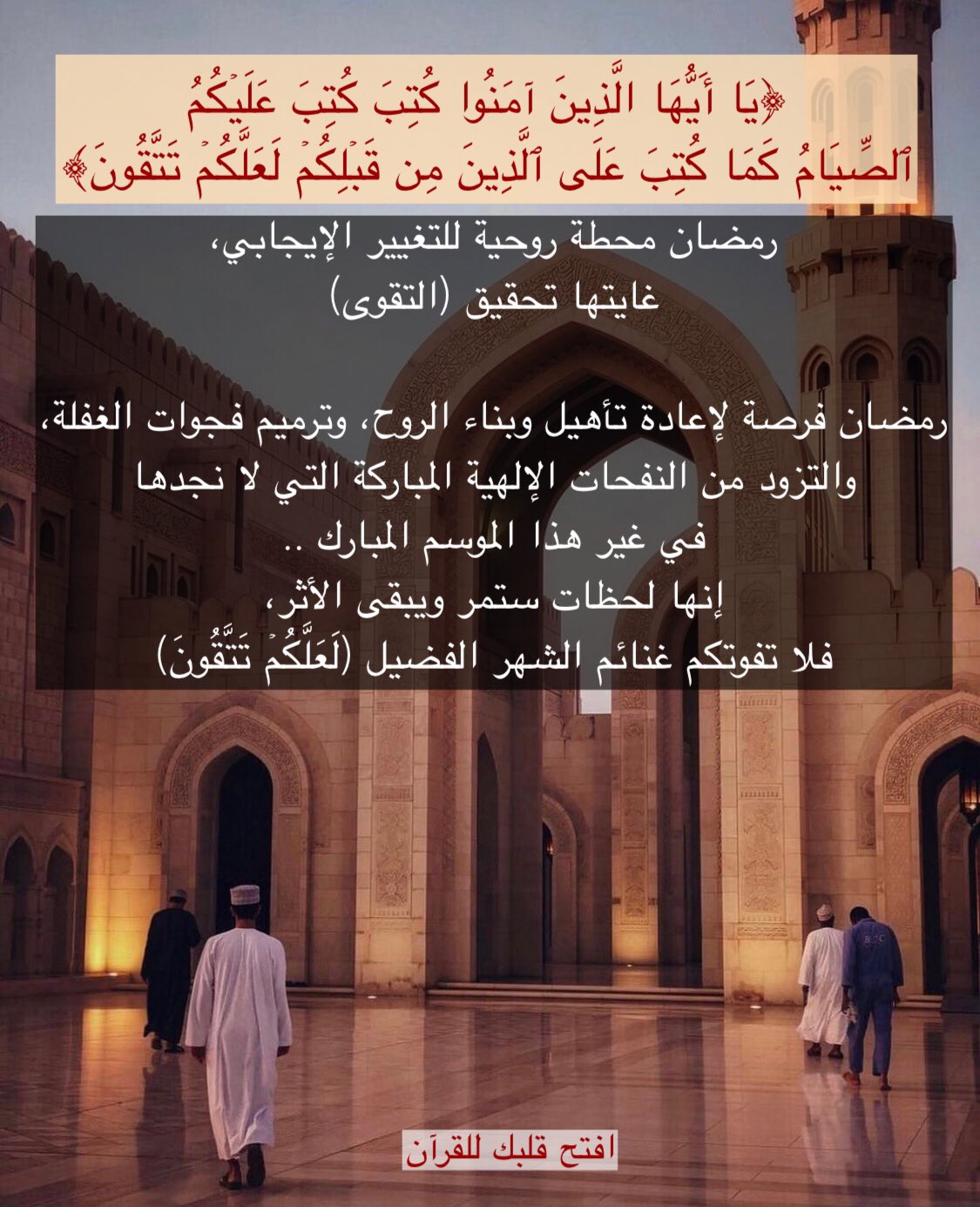 رمضان محطة روحية للتغيير الإيجابي، غايتها تحقيق (التقوى) رمضان فرصة لإ... المزيد