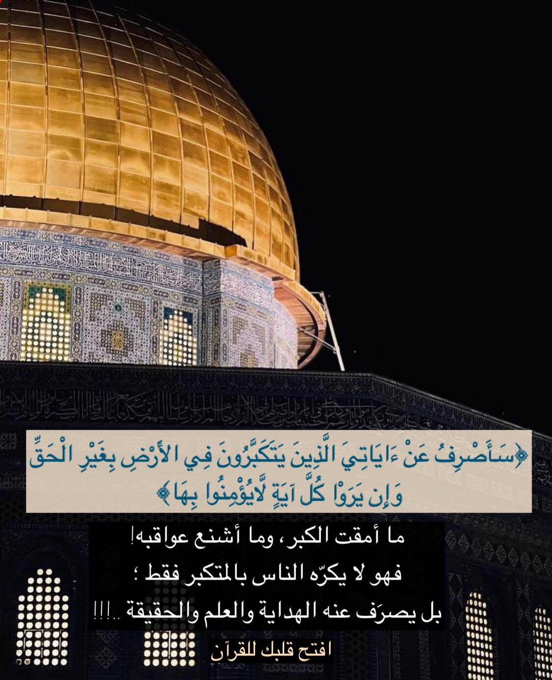 ﴿سَأَصْرِفُ عَنْ آيَاتِيَ الَّذِينَ يَتَكَبَّرُونَ فِي الْأَرْضِ بِغَيْرِ الْحَقِّ وَإِن يَرَوْا كُلَّ آيَةٍ لَّا يُؤْمِنُوا بِهَا﴾: