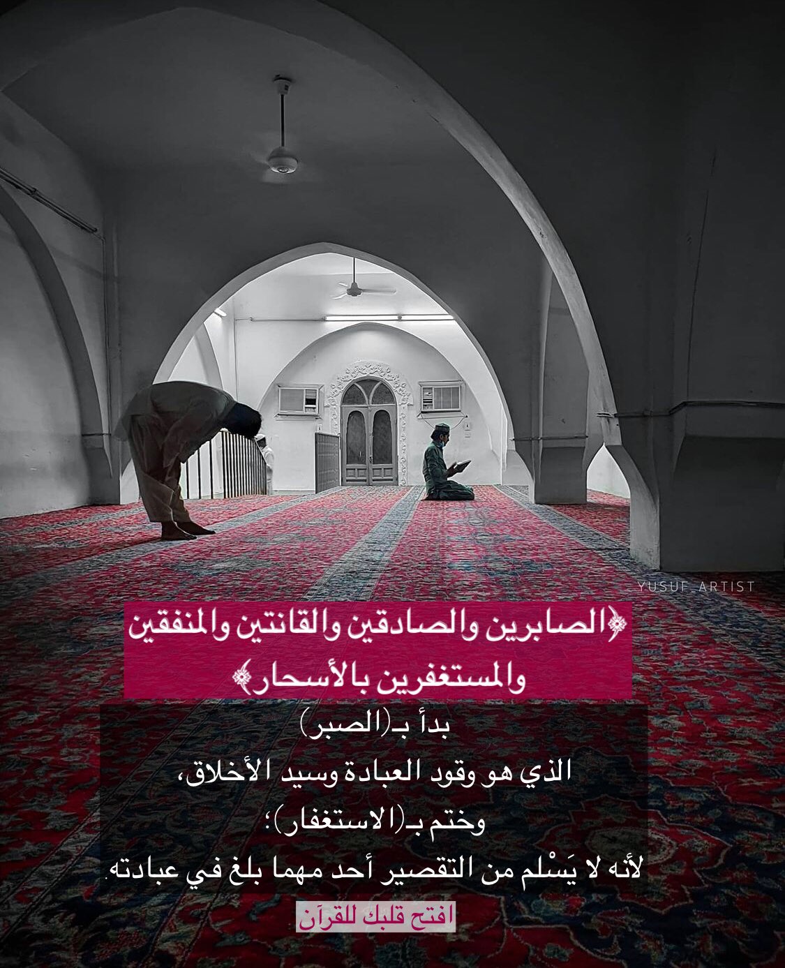 ﴿الصَّابِرِينَ وَالصَّادِقِينَ وَالْقَانِتِينَ وَالْمُنفِقِينَ وَالْمُسْتَغْفِرِينَ بِالْأَسْحَارِ﴾: