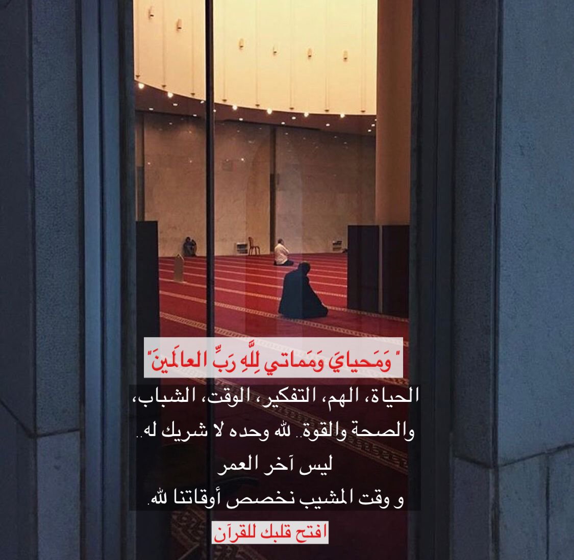 الحياة، الهم، التفكير، الوقت، الشباب، والصحة والقوة .. لله وحده لا شريك له. ليس آخر العمر.