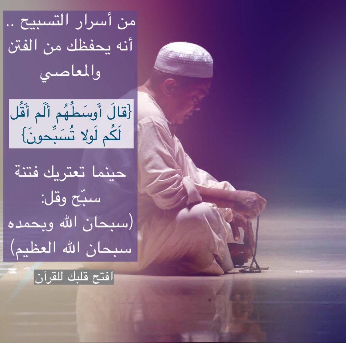 من أسرار التسبيح أنه يحفظك من الفتن والمعاصي؛ حينما تعتريك فتنة سبّح وقل: (سبحان الله وبحمده سبحان الله العظيم).