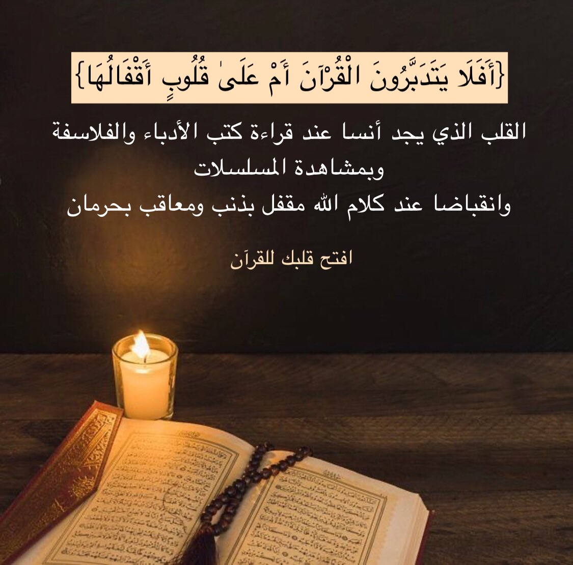 القلب الذي يجد أنسا عند قراءة كتب الأدباء والفلاسفة وبمشاهدة المسلسلات وانقباضا عند كلام الله مقفل بذنب ومعاقب بحرمان.