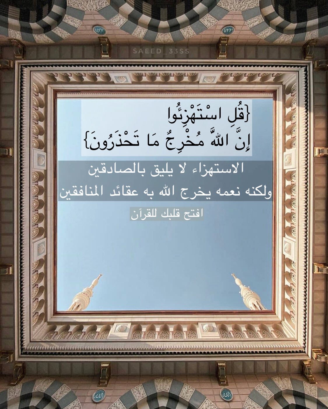 ﴿قُلِ اسْتَهْزِئُوا إِنَّ اللَّهَ مُخْرِجٌ مَّا تَحْذَرُونَ﴾: