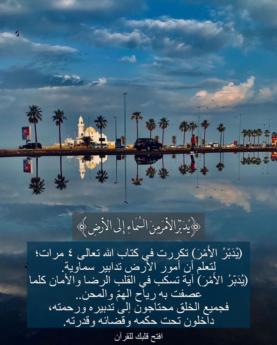 (يُدَبِّرُ الْأَمْرَ) تكررت في كتاب الله تعالى ﴿٤﴾ مرات؛ لتعلم أن أمور الأرض تدابير سماوية.