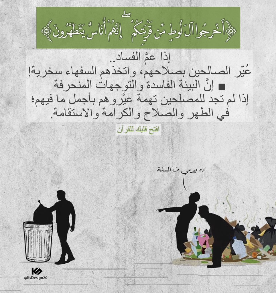 ﴿أَخْرِجُوا آلَ لُوطٍ مِّن قَرْيَتِكُمْ إِنَّهُمْ أُنَاسٌ يَتَطَهَّرُونَ﴾
