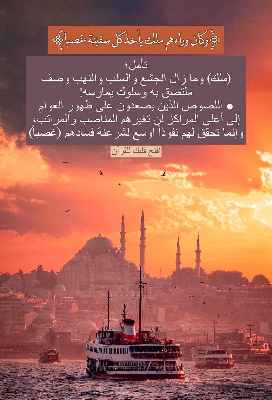 ﴿وَكَانَ وَرَاءَهُم مَّلِكٌ يَأْخُذُ كُلَّ سَفِينَةٍ غَصْبًا﴾