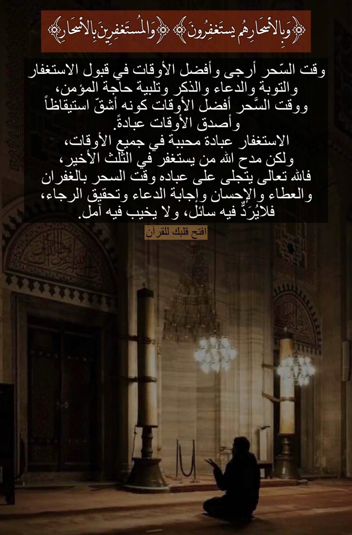 ﴿وَبِالأَسْحَارِ هُمْ يَسْتَغْفِرُونَ﴾ ، ﴿وَالْمُسْتَغْفِرِينَ بِالْأَسْحَارِ﴾