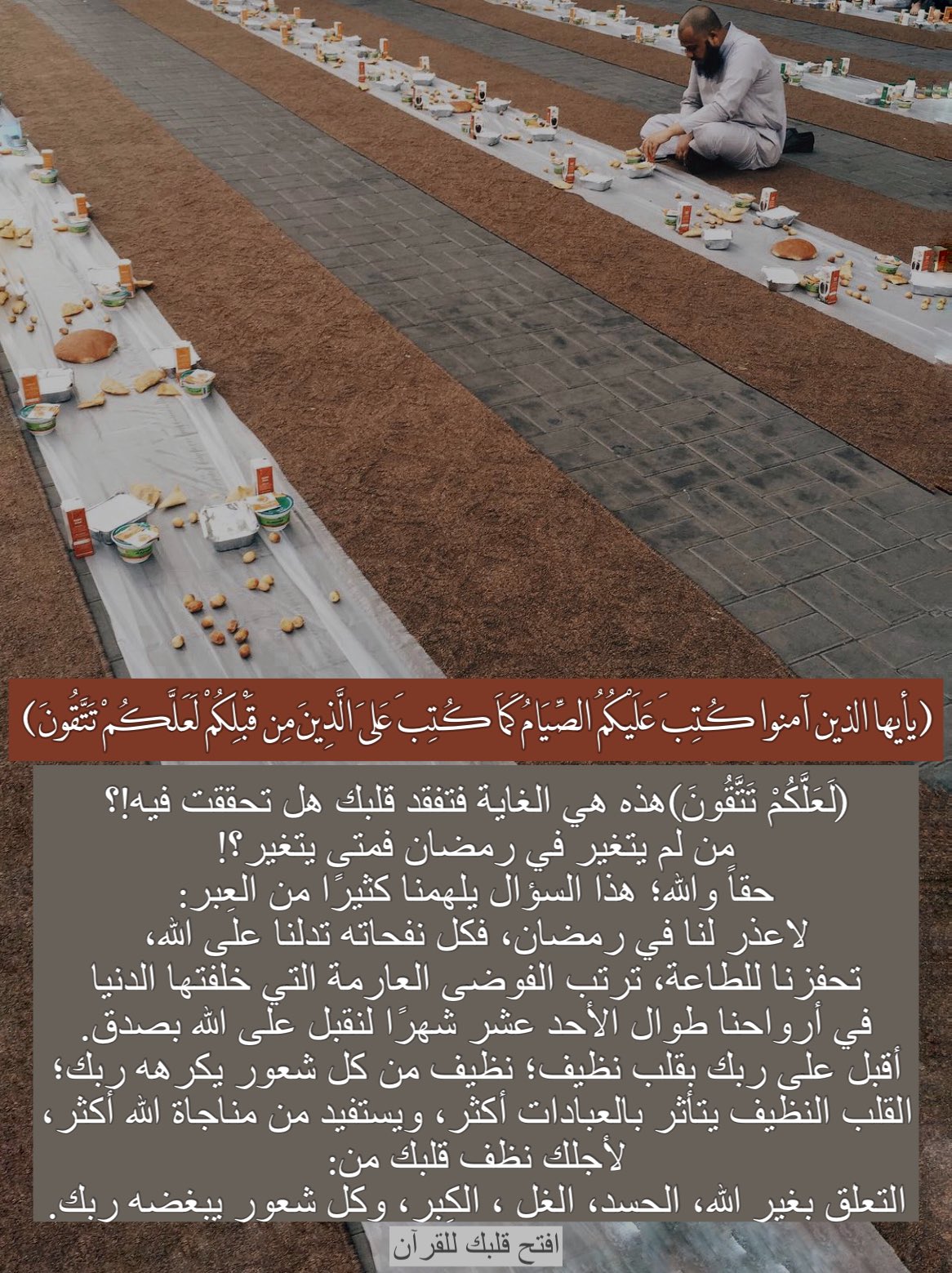(لَعَلَّكُمْ تَتَّقُونَ) هذه هي الغاية فتفقد قلبك هل تحققت فيه!؟ من لم ... المزيد