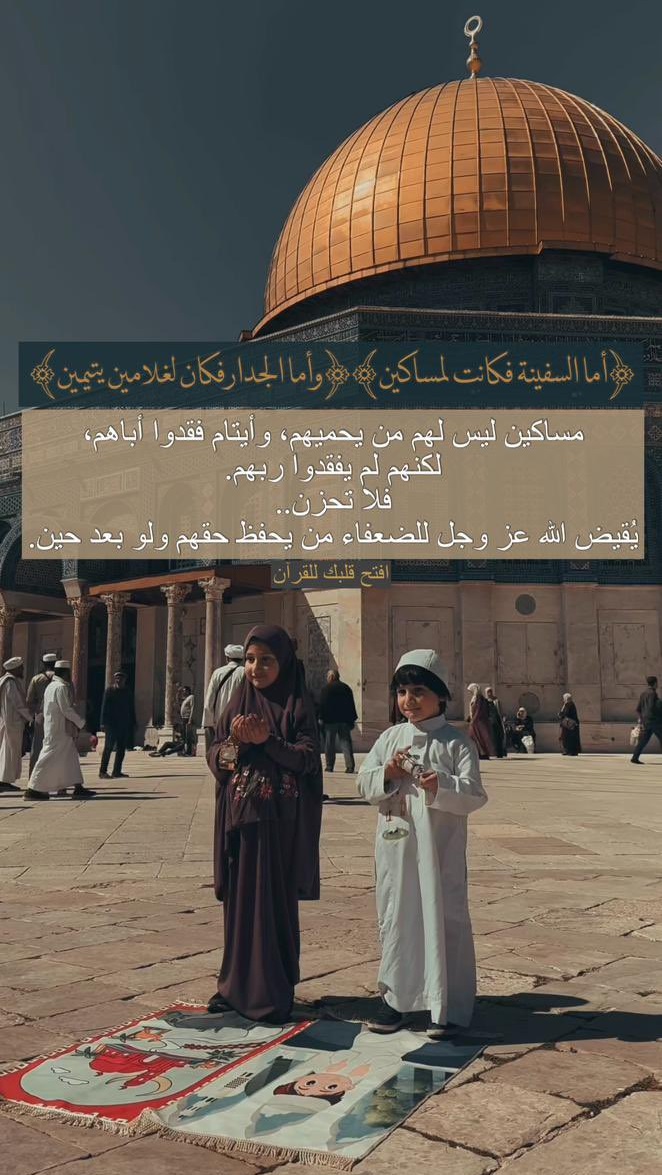 مساكين ليس لهم من يحميهم، وأيتام فقدوا أباهم، لكنهم لم يفقدوا ربهم. فلا تحزن .. يُقيض الله عز وجل للضعفاء من يحفظ حقهم ولو بعد حين.
