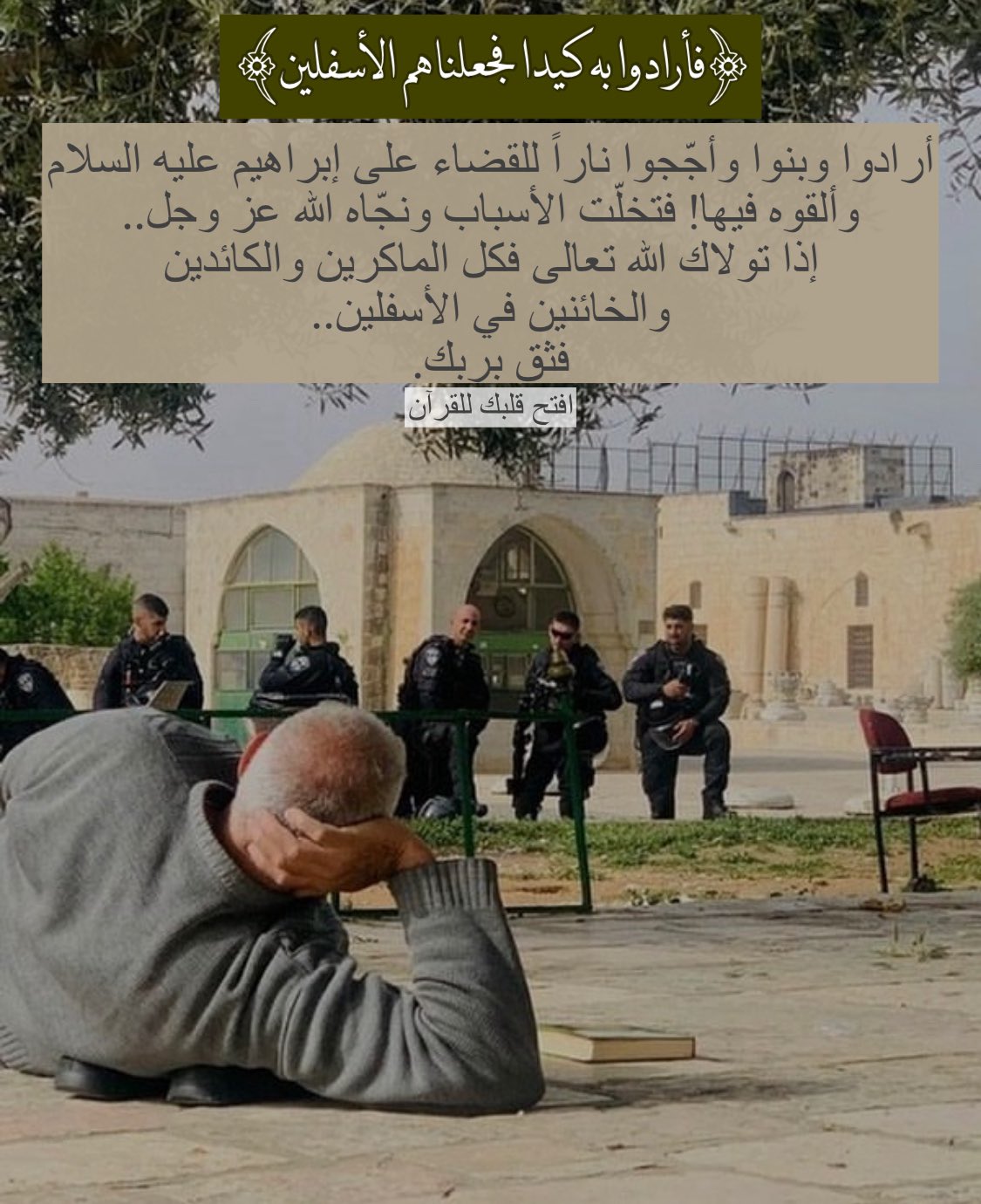 أرادوا وبنوا وأجّجوا ناراً للقضاء على إبراهيم عليه السلام وألقوه فيها! فتخلّت الأسباب ونجّاه الله عز وجل .. إذا تولاك الله تعالى فكل الماكرين والكائدين والخائنين في الأسفلين .. فثق بربك.