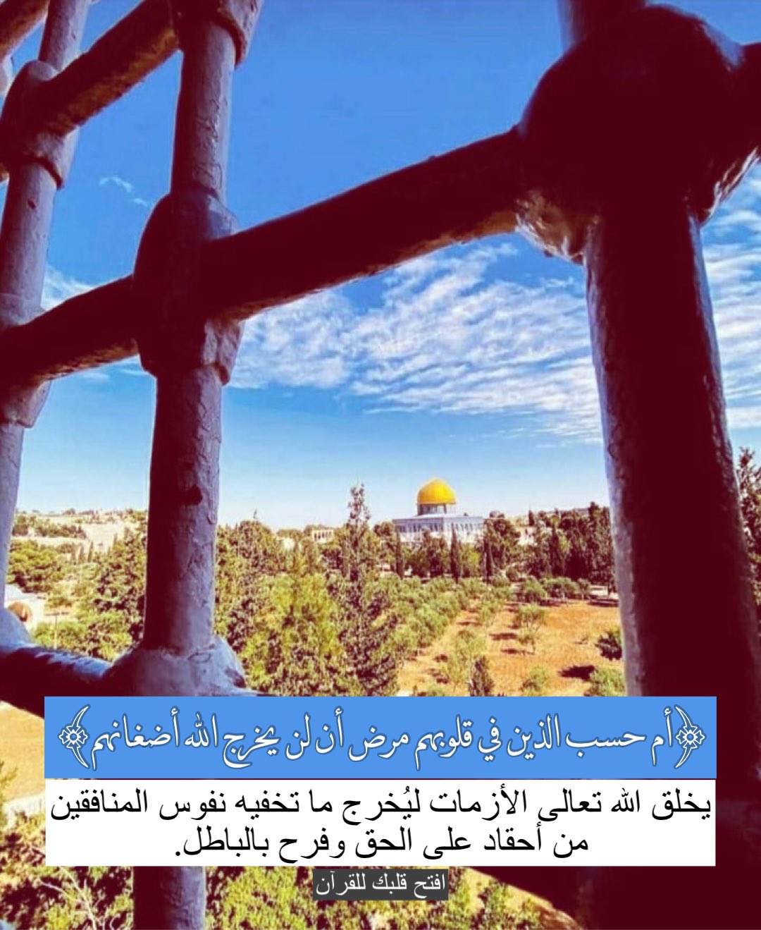 ﴿أَمْ حَسِبَ الَّذِينَ فِي قُلُوبِهِم مَّرَضٌ أَن لَّن يُخْرِجَ اللَّهُ أَضْغَانَهُمْ﴾