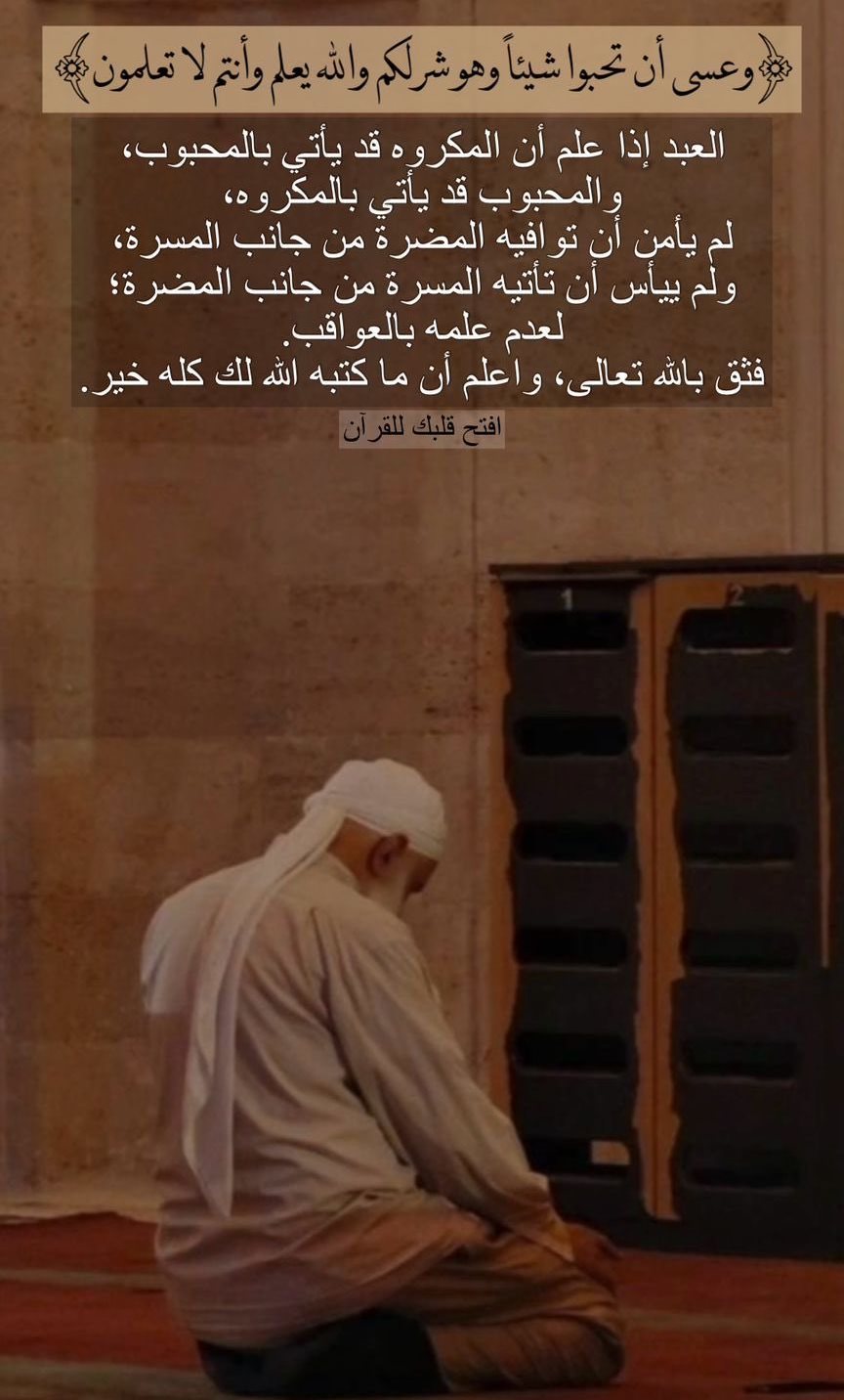 ﴿وَعَسَى أَن تُحِبُّوا شَيْئًا وَهُوَ شَرٌّ لَّكُمْ وَاللَّهُ يَعْلَمُ وَأَنتُمْ لَا تَعْلَمُونَ﴾