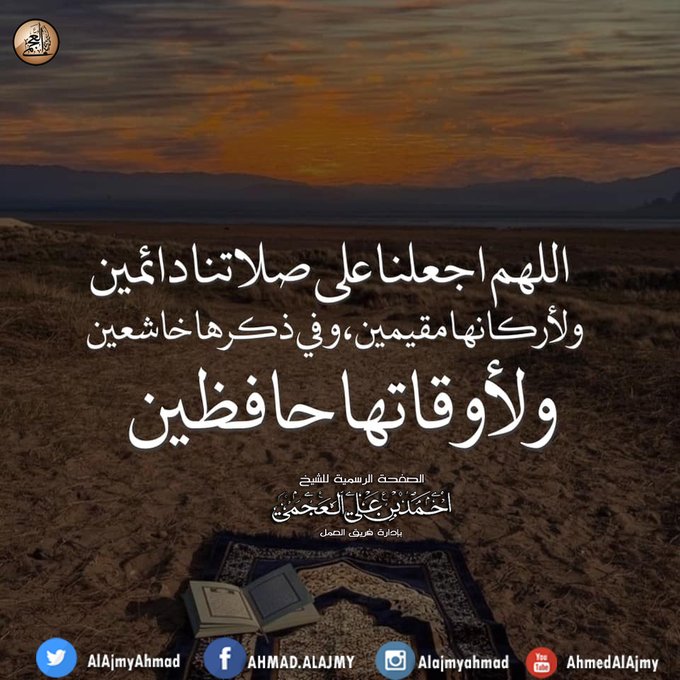 اللهم اجعلنا على صلاتنا دائمین ولأركانها مقيمين، وفي ذكرها خاشعين ولأوقاتها حافظين.