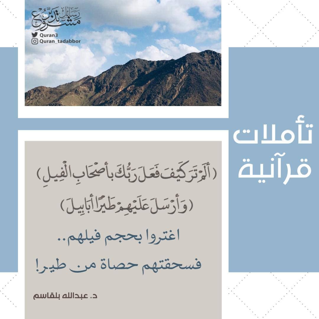 ﴿ أَلَمْ تَرَ كَيْفَ فَعَلَ رَبُّكَ بِأَصْحَابِ الْفِيلِ ﴾.. ﴿ وَأَرْسَلَ عَلَيْهِمْ طَيْرًا أَبَابِيلَ