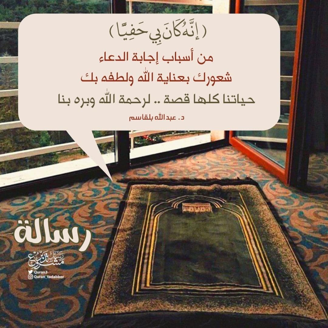 رسالة ﴿ إِنَّهُ كَانَ بِي حَفِيًّا ﴾. ‏من أسباب إجابة الدعاء ‏شعورك بعناية الله ولطفه بك. حياتنا كلها قصة .. لرحمة الله وبره بنا
