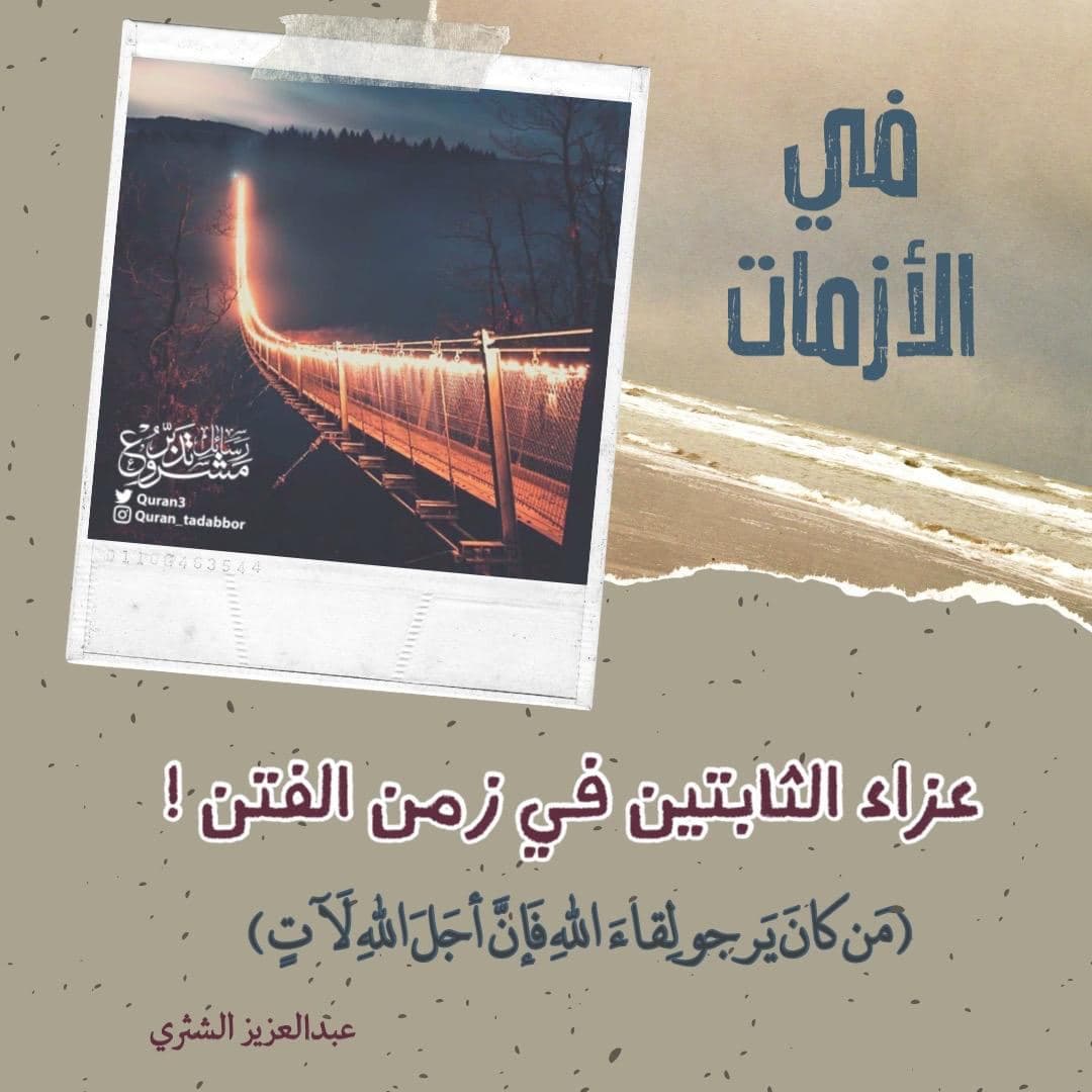 ي الأزمات عزاء الثابتين ‏في زمن الفتن ‏﴿مَن كانَ يَرجو لِقاءَ اللهِ فَإِنَّ أَجَلَ اللهِ لَآتٍ﴾