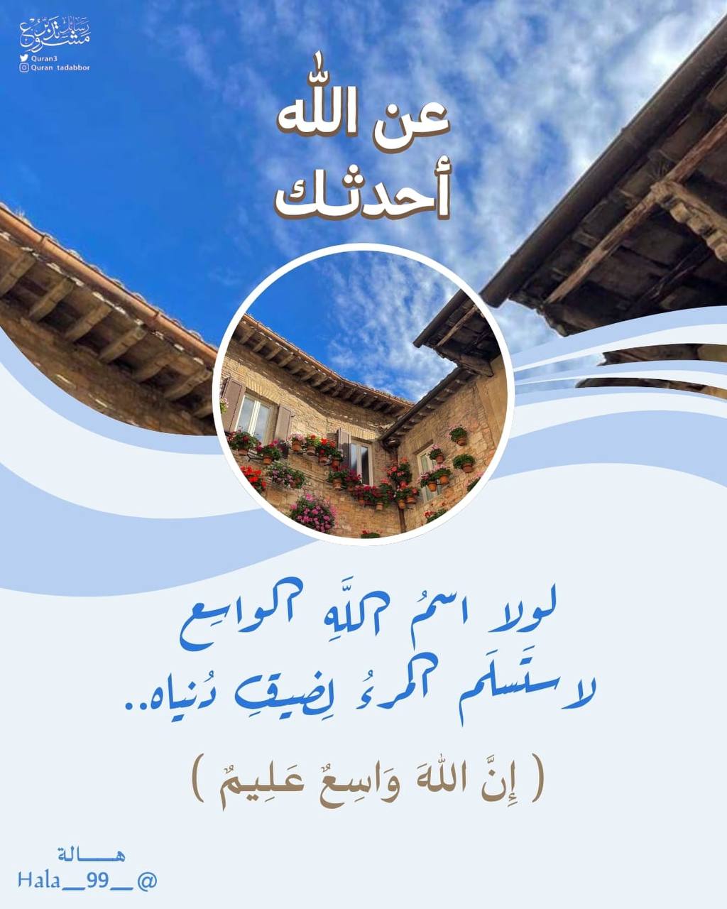 • لولا اسمُ اللَّهِ الواسِع؛ لاستَسلَم المَرءُ لِضيقِ دُنياه..