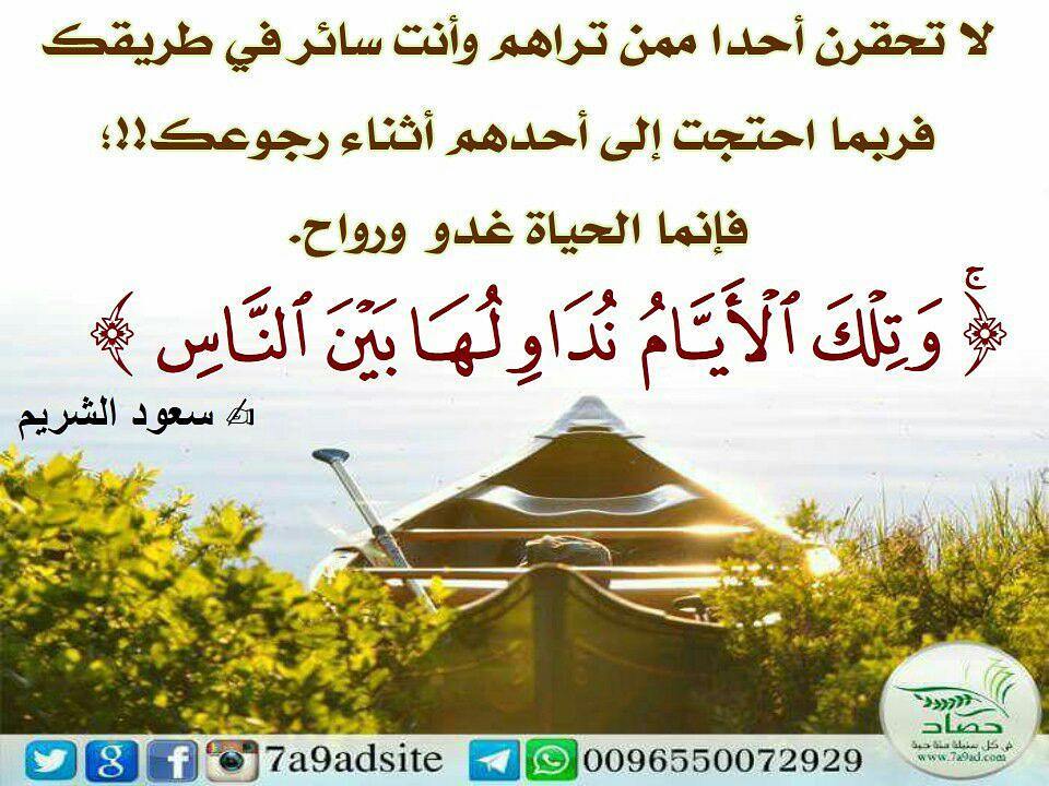 لا تحقرن أحدا ممن تراهم وأنت سائر في طريقك فربما احتجت إلى أحدهم أثناء رجوعك!!؛فإنما الحياة غدو ورواح(وتلك اﻷيام نداولها بين الناس).