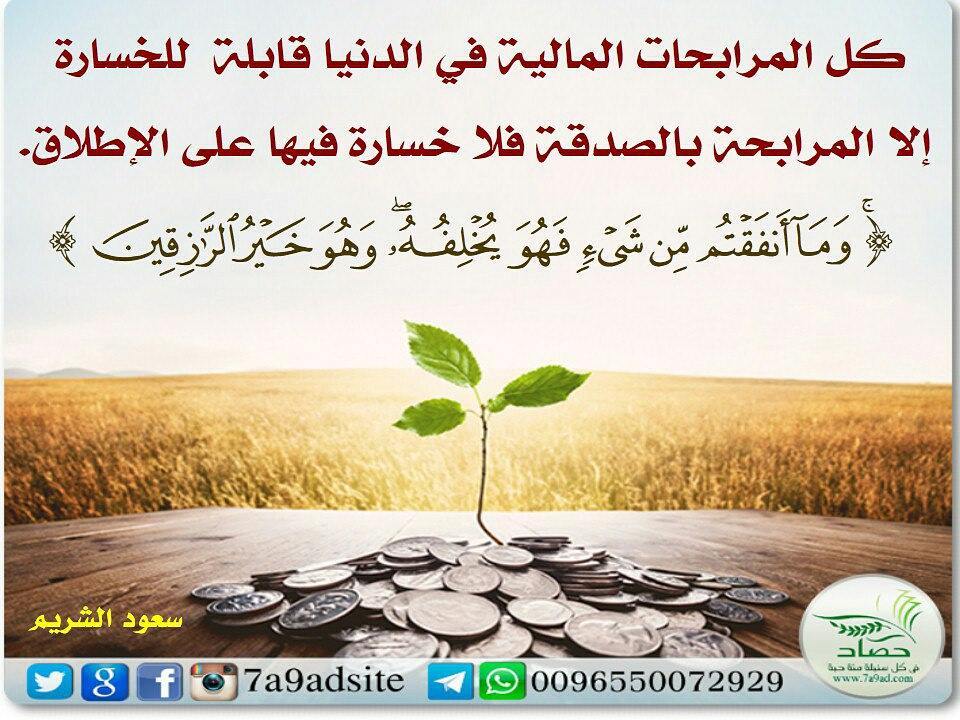 كل المرابحات المالية في الدنيا قابلة للخسارة الا المرابحة بالصدقة فلا خسارة فيها علي الاطلاق