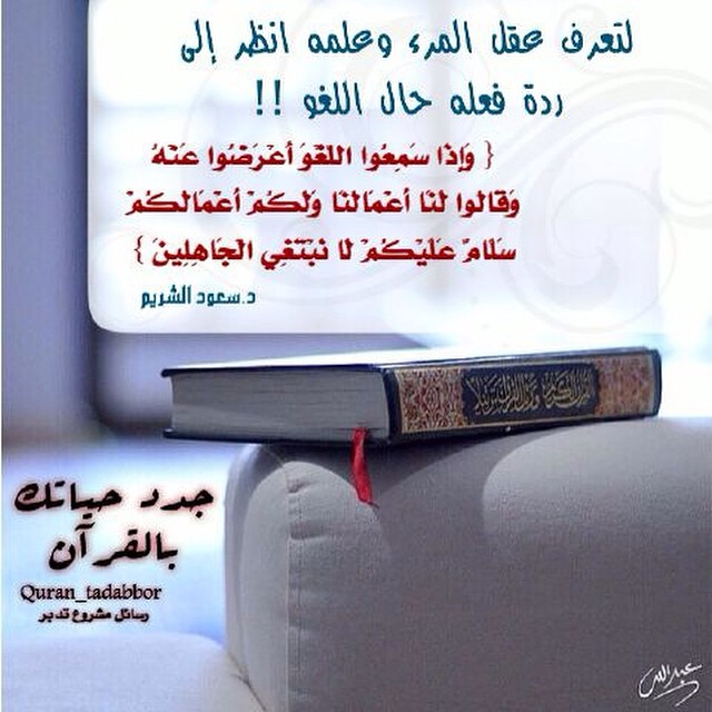 (وَإِذَا سَمِعُوا اللَّغْوَ أَعْرَضُوا عَنْهُ وَقَالُوا لَنَا أَعْمَالُنَا وَلَكُمْ أَعْمَالُكُمْ سَلَامٌ عَلَيْكُمْ لَا نَبْتَغِي الْجَاهِلِينَ )