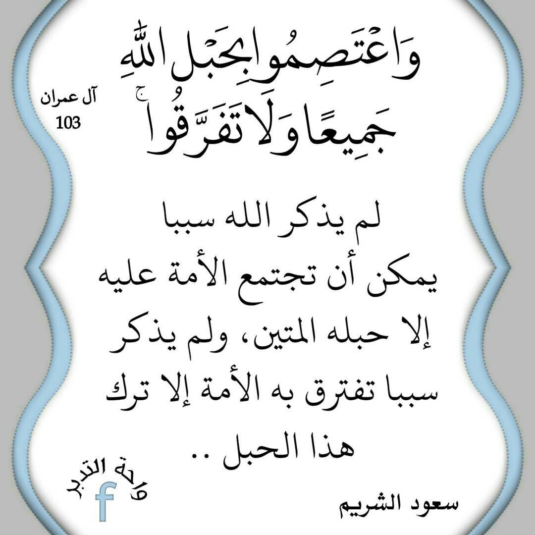 لم يذكر الله سببا يمكن أن تجتمع اﻷمة عليه إلا حبله المتين، ولم يذكر سببا تفترق به اﻷمة إلا ترك هذا الحبل.