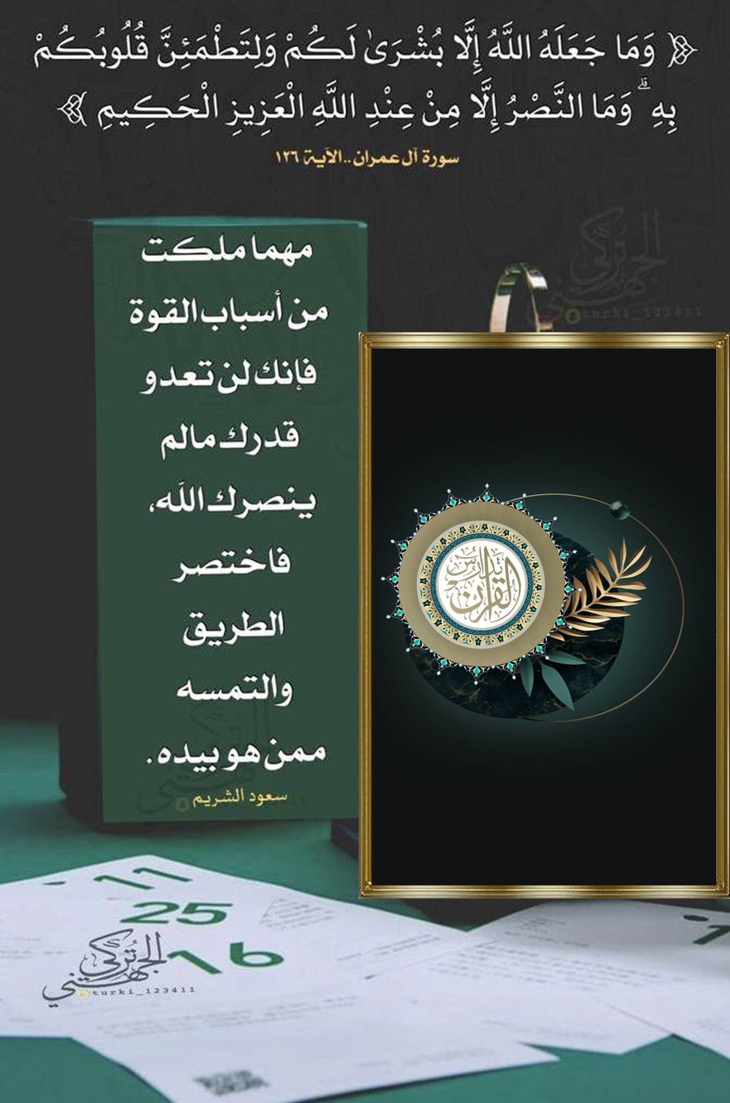 ﴿وَمَا جَعَلَهُ اللَّهُ إِلَّا بُشْرَى لَكُمْ وَلِتَطْمَئِنَّ قُلُوبُكُم بِهِ وَمَا النَّصْرُ إِلَّا مِنْ عِندِ اللَّهِ الْعَزِيزِ الْحَكِيمِ﴾