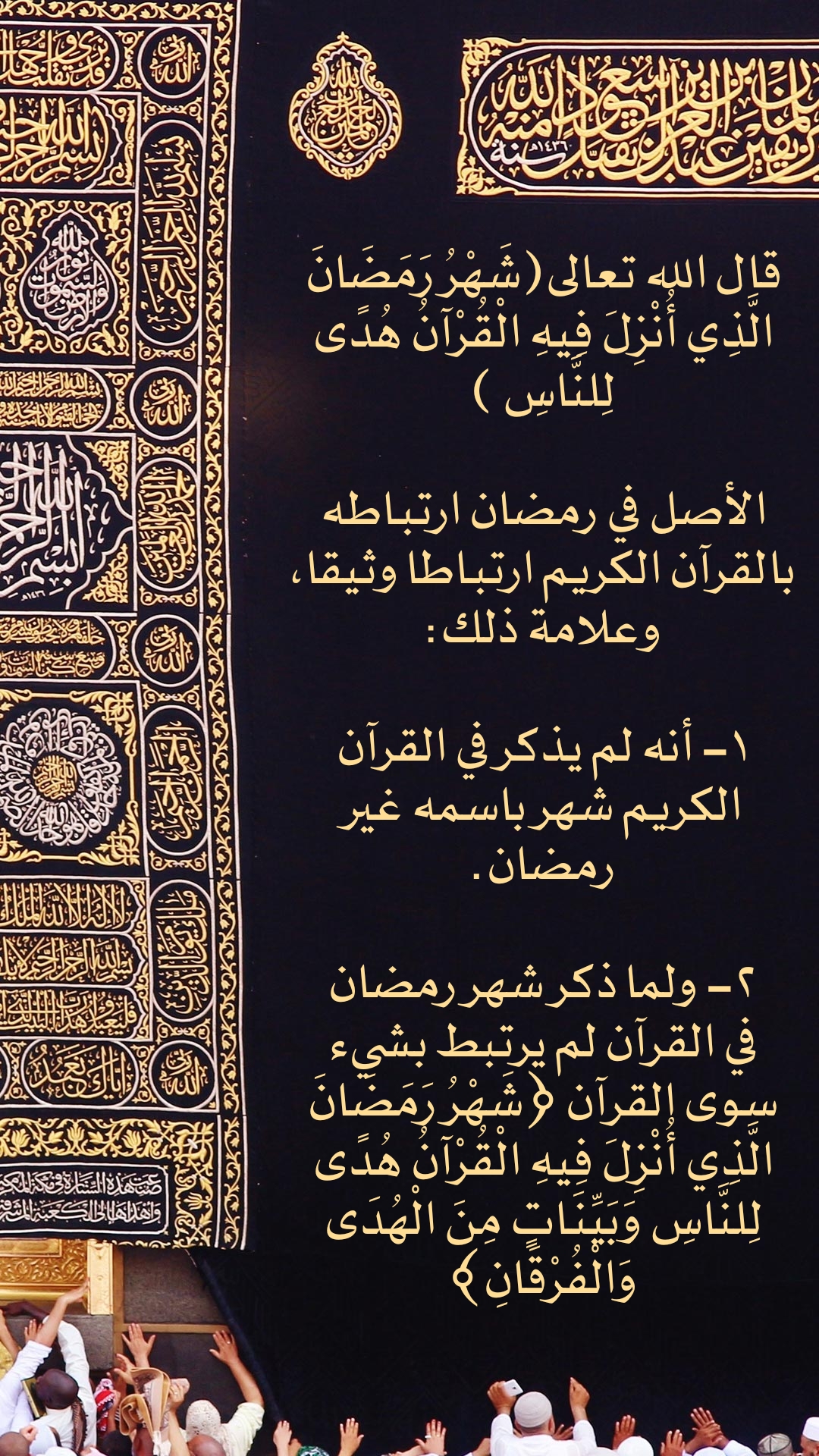 الأصل في رمضان ارتباطه بالقرآن الكريم ارتباطا وثيقا، وعلامة ذلك :