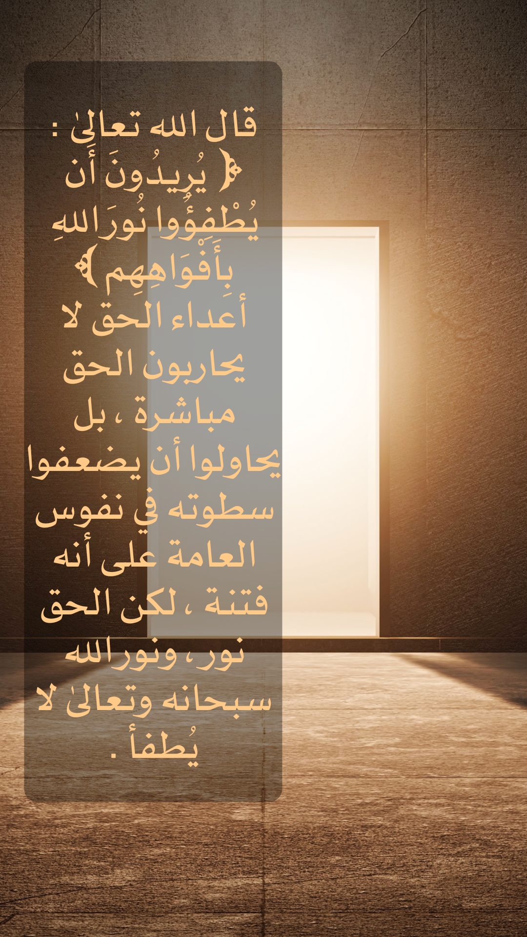 قال الله تعالى :( يُرِيدُونَ أن يُطْفِئُوا نور الله بأفواههم ) أعداء الحق لا يحاربون الحق مباشرة ، بل
